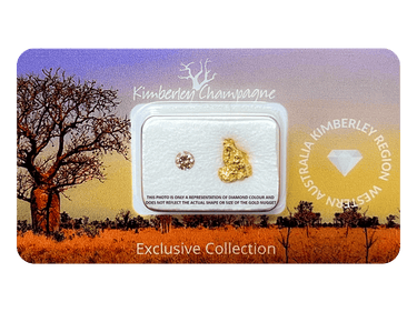 This collector’s item showcases a certified Australian champange diamond from the Argyle Mine, sealed alongside natural Australian gold nuggets. Each piece is beautifully presented in a display box and comes with an Kimberley Champagne Authenticity Certificate, making it a unique and meaningful keepsake or gift.