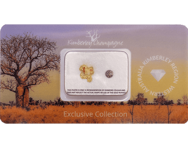 This collector’s item showcases a certified Australian champange diamond from the Argyle Mine, sealed alongside natural Australian gold nuggets. Each piece is beautifully presented in a display box and comes with an Kimberley Champagne Authenticity Certificate, making it a unique and meaningful keepsake or gift.