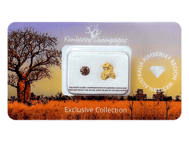 This collector’s item showcases a certified Australian champange diamond from the Argyle Mine, sealed alongside natural Australian gold nuggets. Each piece is beautifully presented in a display box and comes with an Kimberley Champagne Authenticity Certificate, making it a unique and meaningful keepsake or gift.