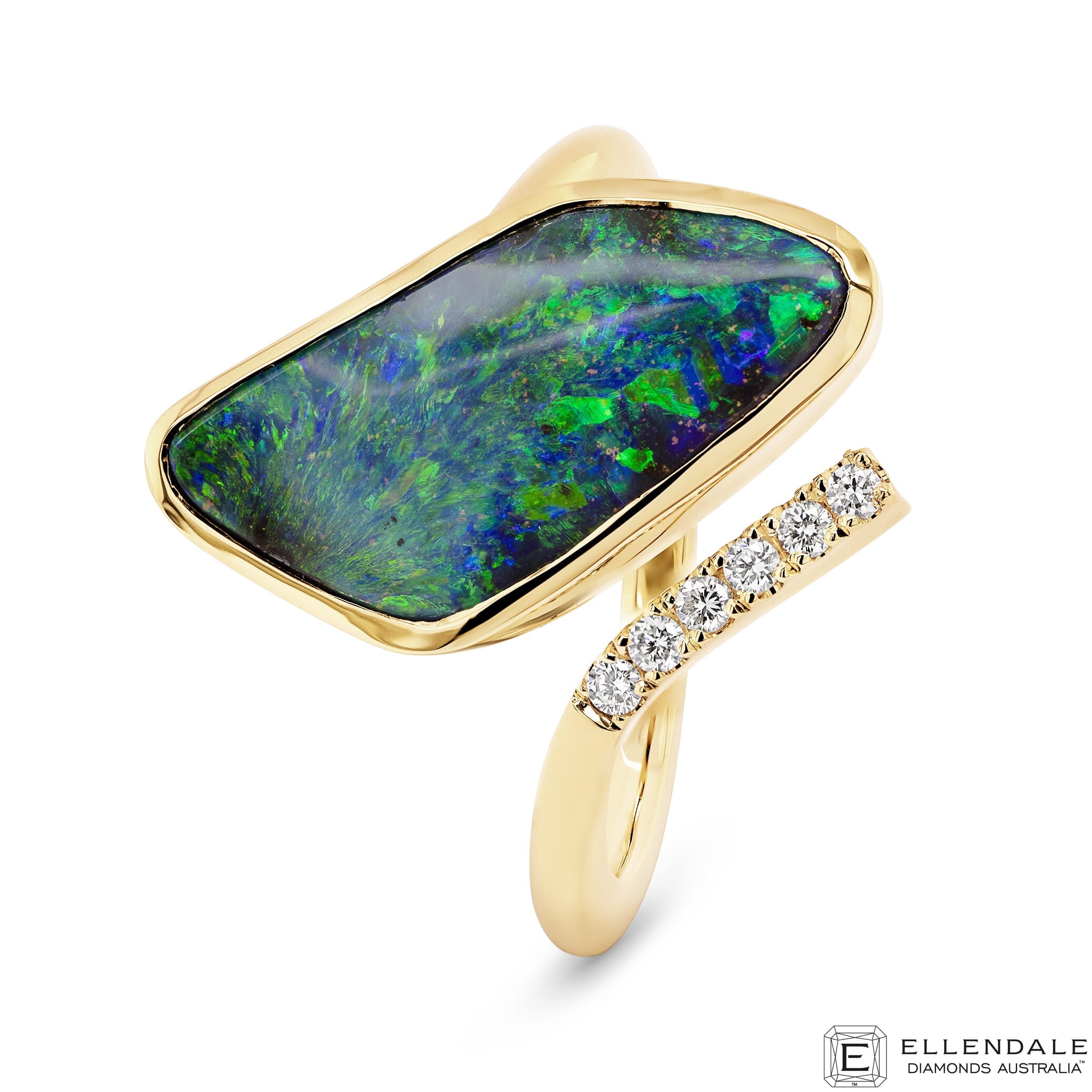 18K Yellow Gold Australian Opal Jewellery Ring - EDJROPAL/023