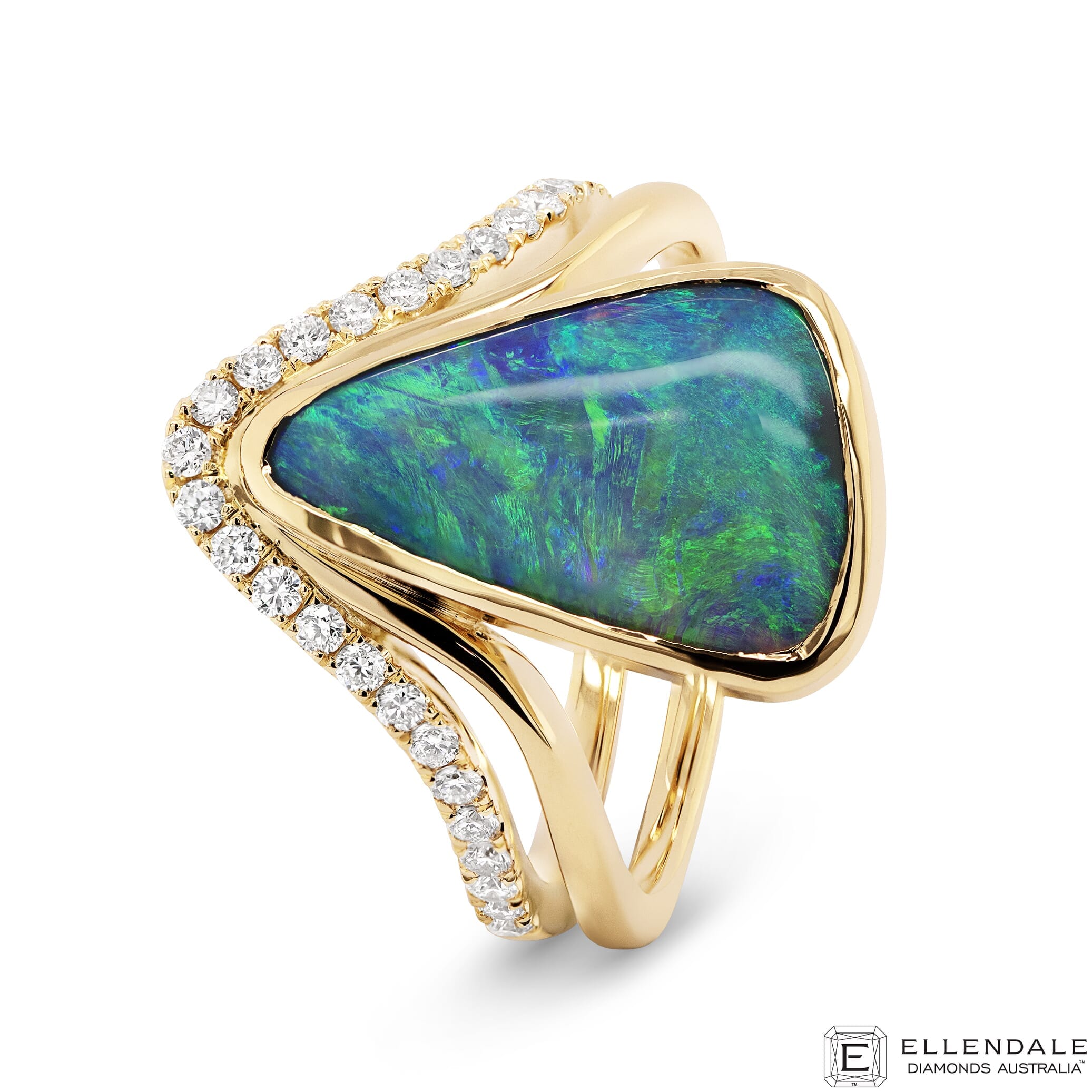 18K Yellow Gold Australian Opal Jewellery Ring - EDJROPAL/026