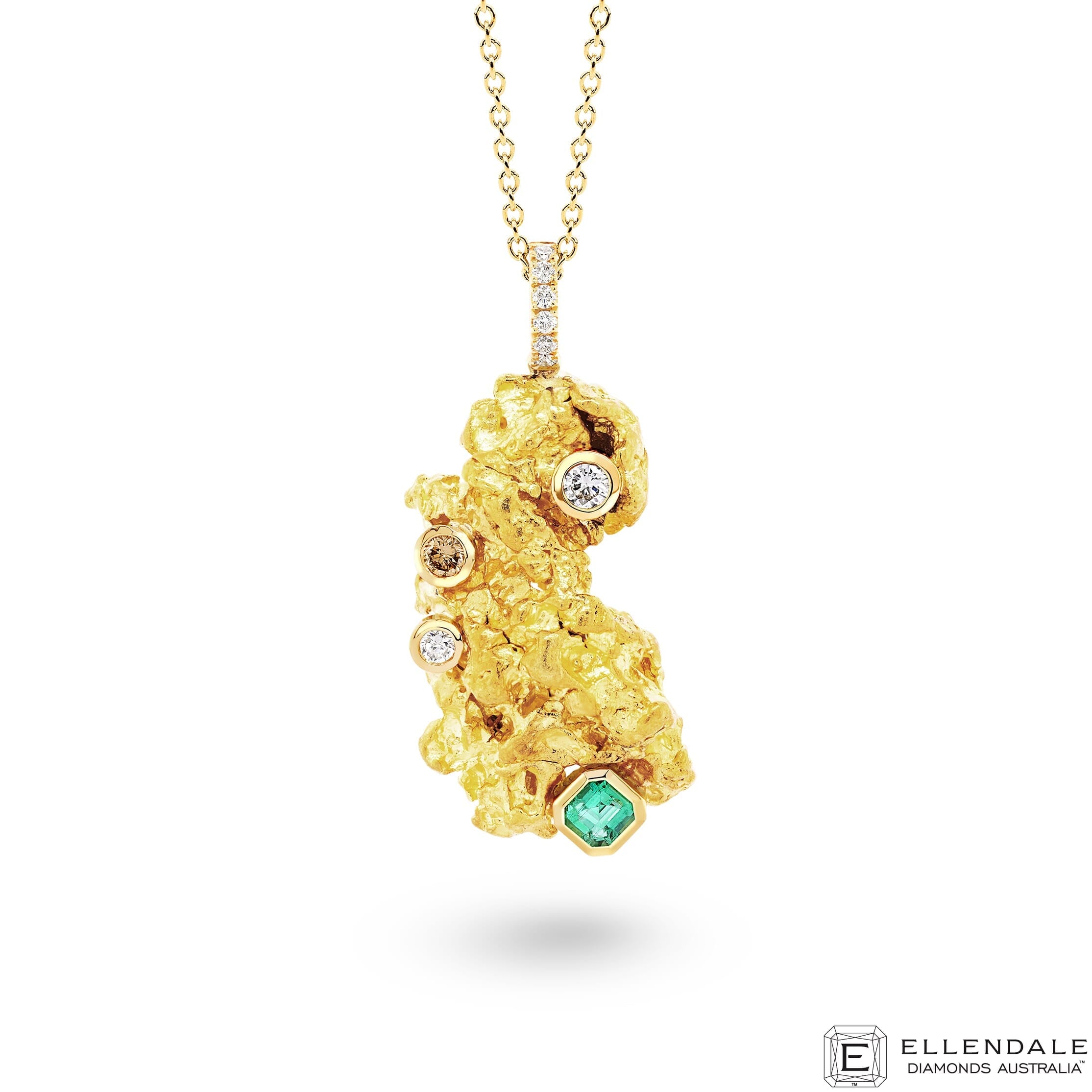 Crafted in Australia, this piece features a genuine natural gold nugget sourced from the heart of Western Australia. Each nugget is unique, making every design truly one of a kind. Set in solid 18K gold, it’s a celebration of raw Australian beauty and expert local craftsmanship.